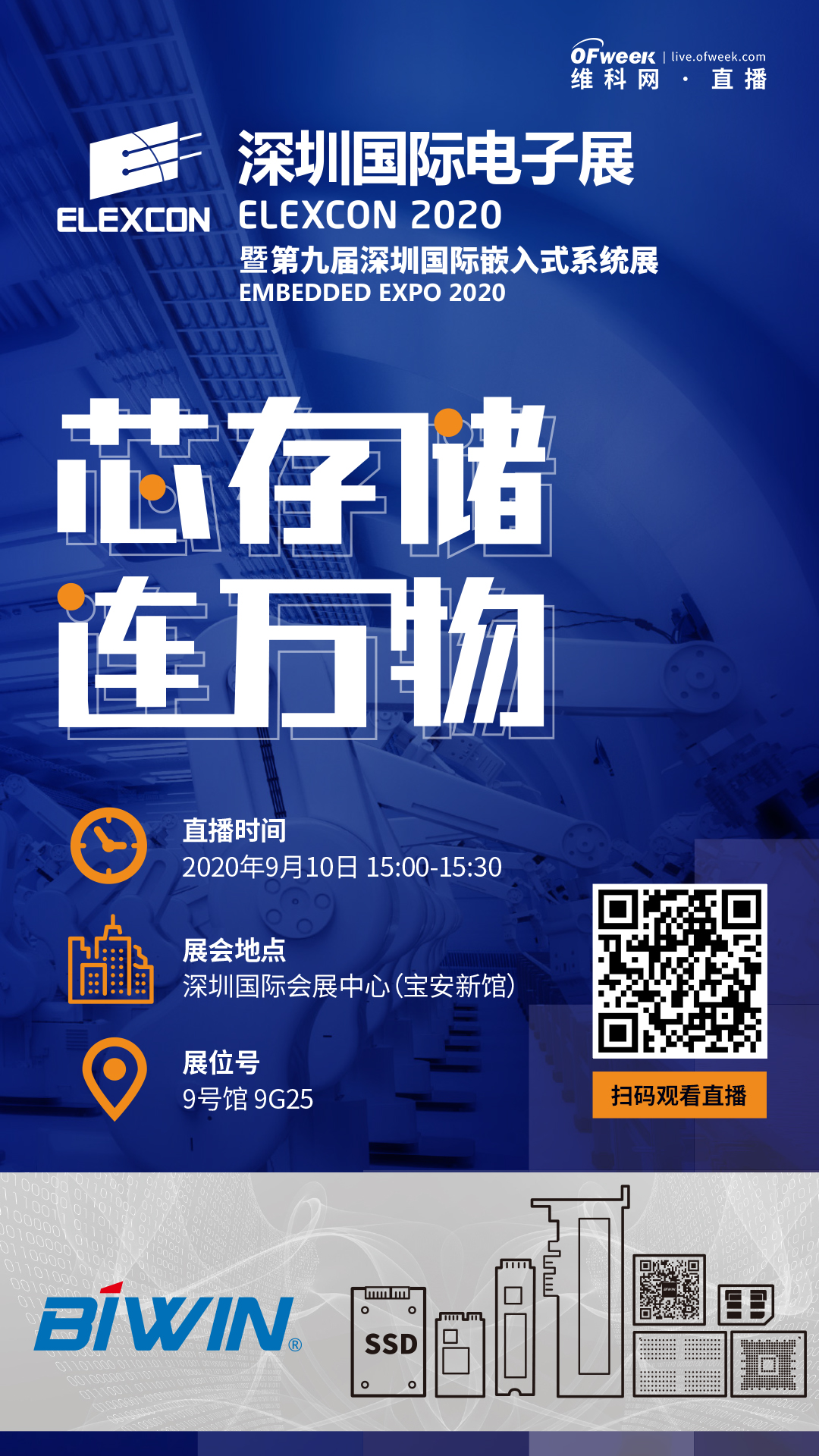 歡迎掃碼觀看佰維展臺(tái)現(xiàn)場(chǎng)直播(可回看),直播時(shí)間為9月10日14:00-14:30