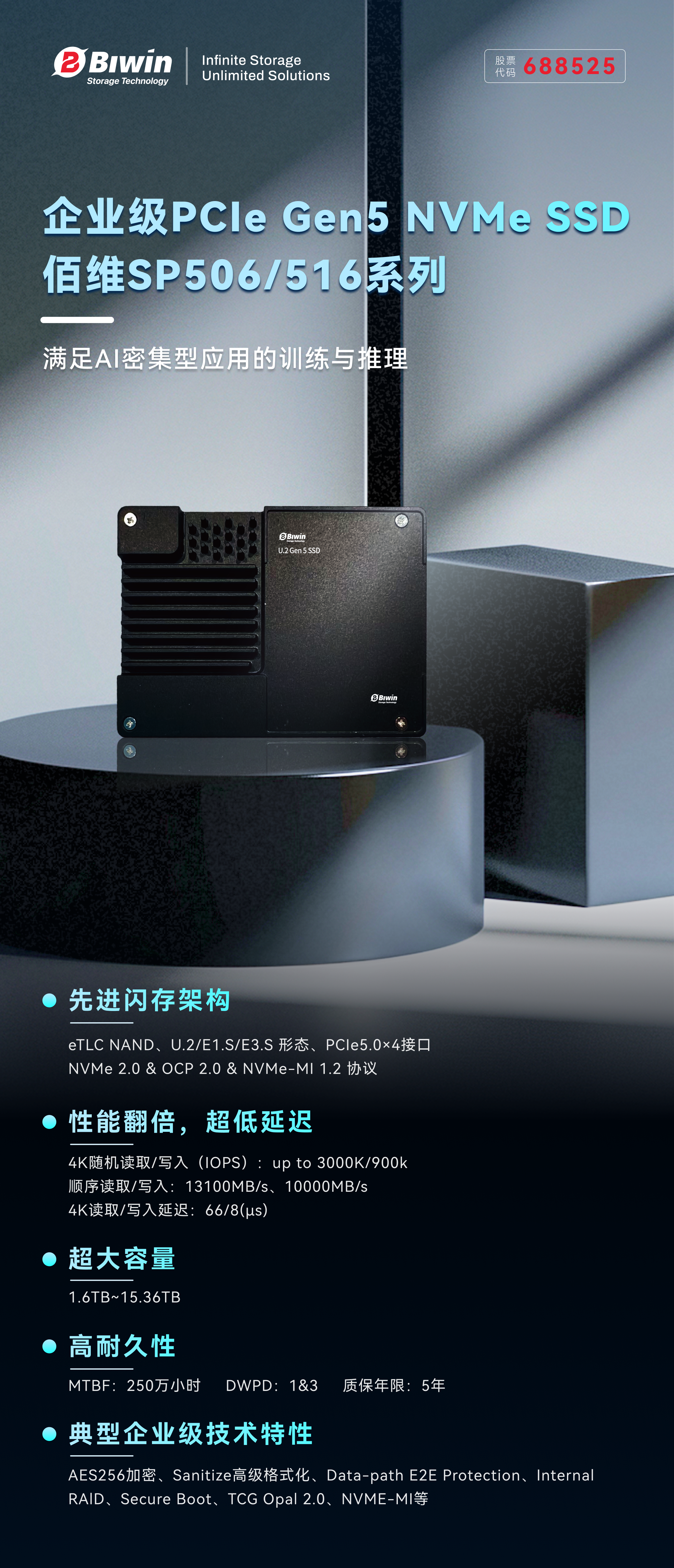 BIWIN SP506/516系列企業(yè)級(jí)PCIe5.0 SSD產(chǎn)品