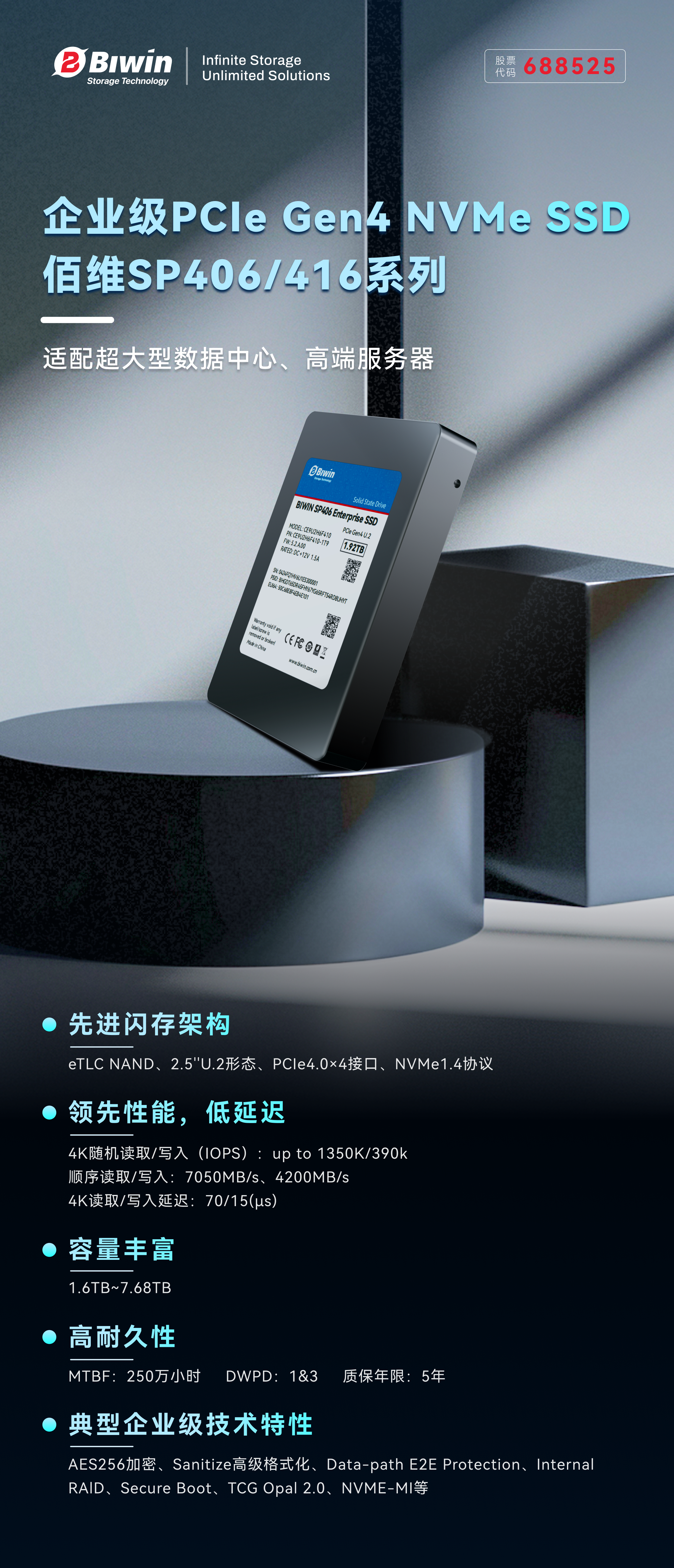佰維SP406/416系列企業(yè)級(jí)PCIe4.0 SSD